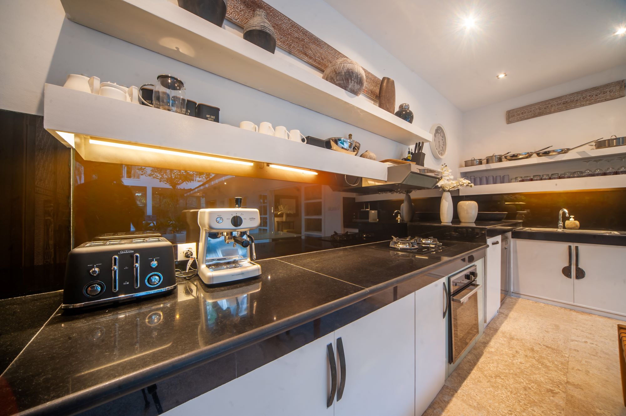 Each villa has a fully-equipped kitchen, with dishwasher, oven, microwave, DeLonghi Espresso machine with beans, kettle and toaster. Private catering is available on request.