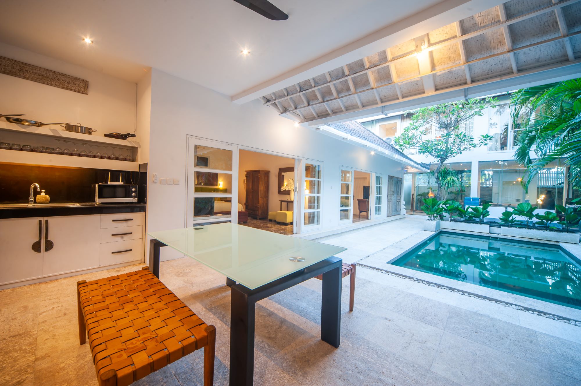 New Refurbishment will be complete May 2022; Designer luxury in a location that does not get any better than this. Minutes’ walk to Eat Street, KuDeTa & Seminyak Square. In the heart of Seminyak | Restaurants, bars on each corner. Daily turndown service Airport Transfer. 65” Smart TV with Netflix Fast Wi-Fi, air-conditioned space as well as tropical outdoor kitchen around the pool Our car will meet you at the airport and bring you to our villa. Meet and greet on arrival.